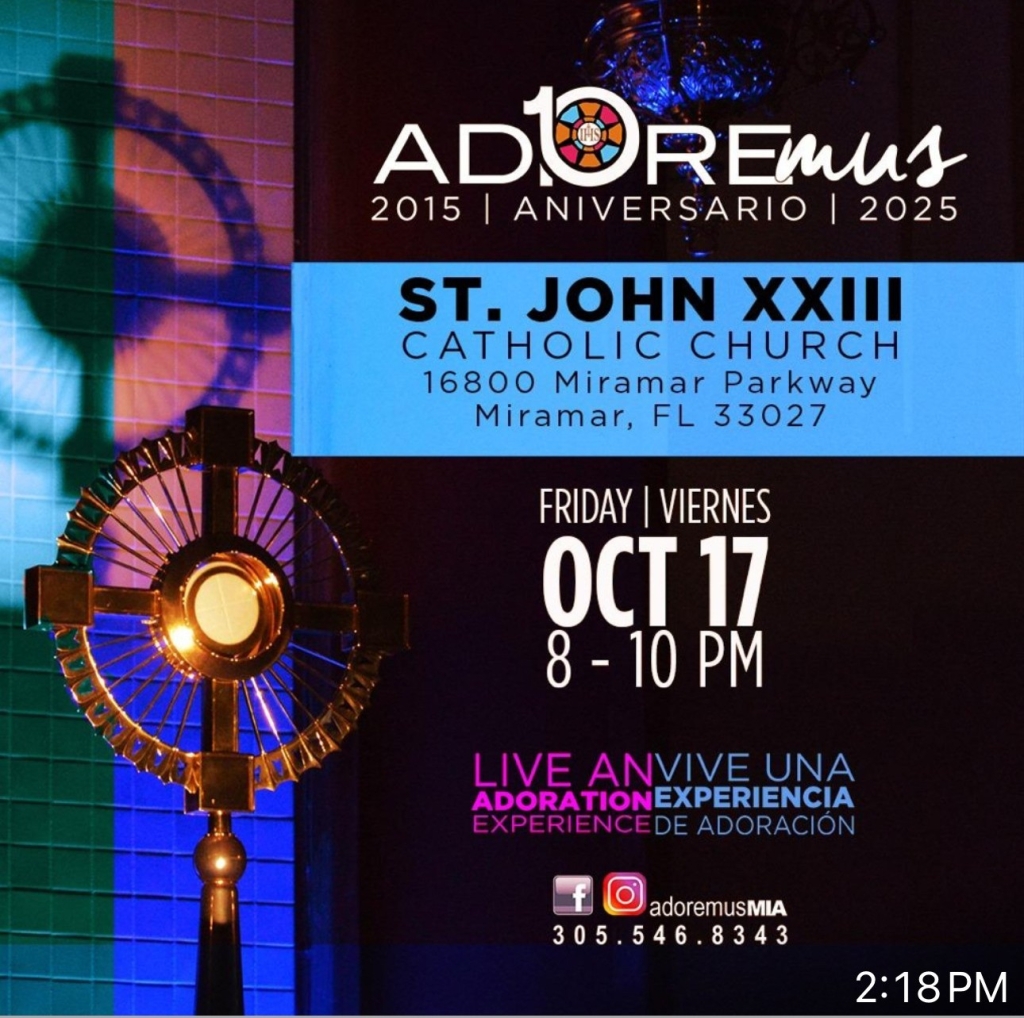 Founded in 2002 in Miramar, the parish, Blessed John XXIII now Saint John XXIII, adopted its patron’s motto from John 17:21: “That All May Be One”.